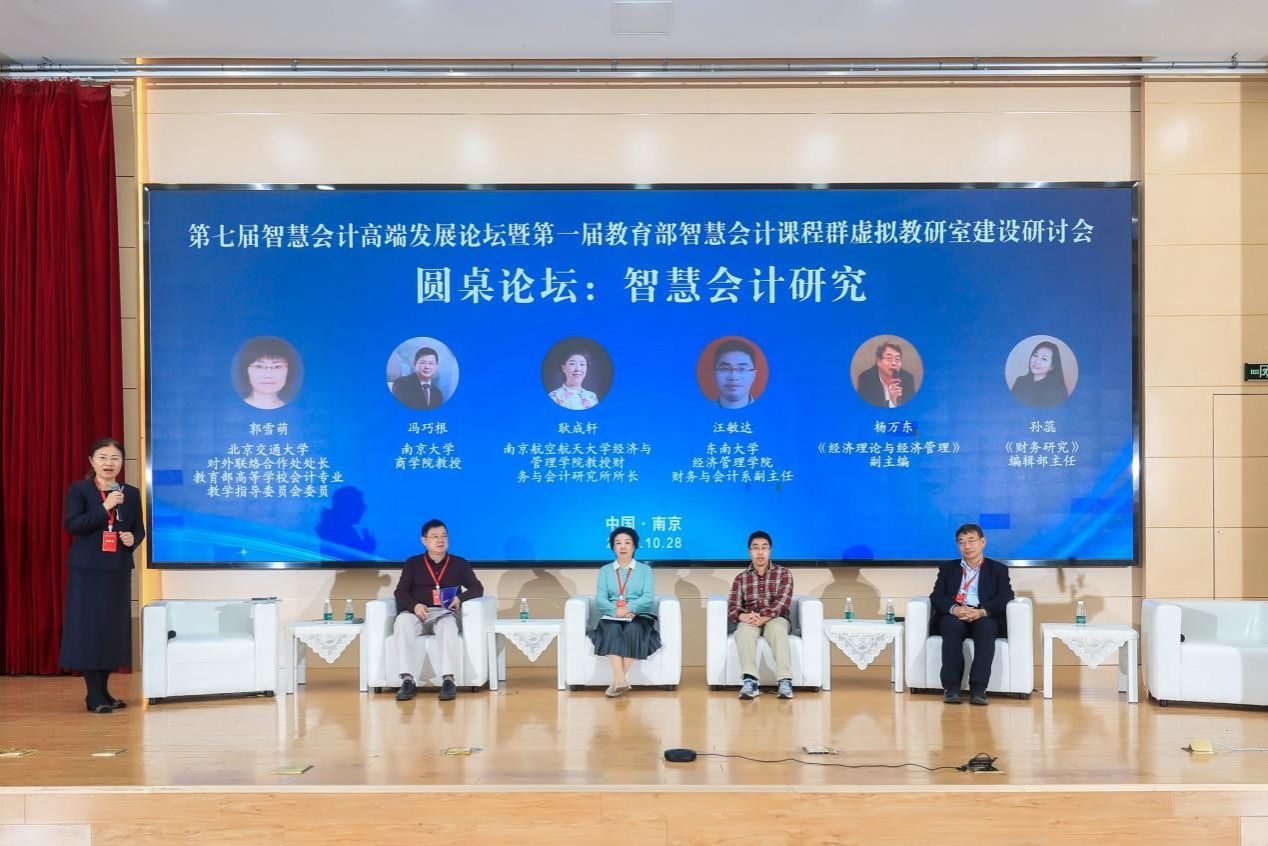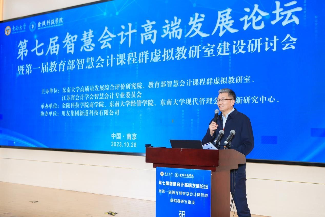 10月28日,由东南大学高质量发展综合评价研究院、教育部智慧会计课程群虚拟教研室、江苏省会计学会智慧会计专业委员会主办,yl9193永利集团、东南大学经管学院、东南大学现代管理会计创新研究中心联合承办,新道科技股份有限公司协办的第七届智慧会计高端发展论坛暨第一届教育部智慧会计课程群虚拟教研室建设研讨会在我校召开。本届论坛以“数字中国、数字经济与智慧会计”为主题,研讨在数字中国、数字经济发展进程中智慧会计面临的新机遇、新问题。来自南京大学、南开大学、东南大学、华中师范大学、上海财经大学、中南财经政法大学、北京交通大学、北京邮电大学、南京审计大学、北京工商大学、重庆理工大学等全国100余所高校师生和企事业单位专业人士参加了线下和线上会议。