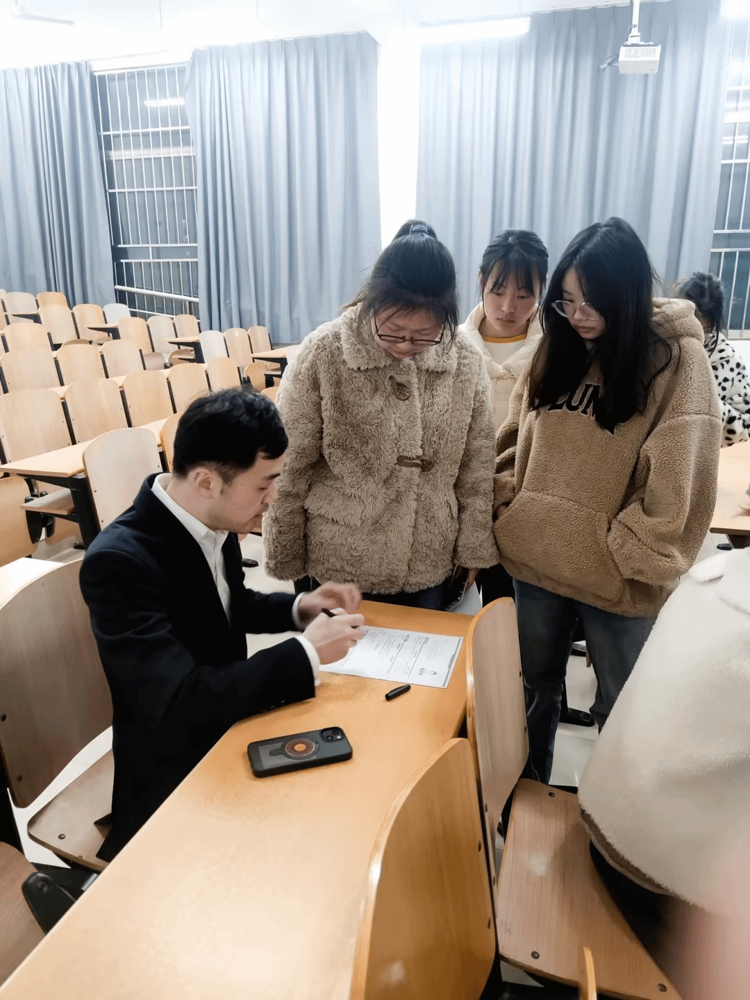 紧接着,嘉宾就“如何制作一份优秀的简历”这一话题进行了分享指导。他结合大量实际案例,详细讲解了简历的撰写技巧,包括如何突出个人优势、如何合理安排简历结构、如何精准使用关键词等。对于在场同学们提出的简历困惑,嘉宾也进行了耐心的一对一分析和修改,使大家的简历更加完善、专业。