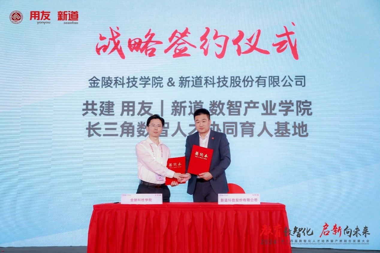 我校与用友新道科技股份有限公司经过多年的合作,先后申报立项了江苏省本科高校产教融合型品牌专业建设点、江苏省研究生工作站等,通过此次校企合作签约,双方将共同在人才培养方案制定、课程体系建设、师资队伍培养、实训环境建设、数字化教学资源库使用、优化教学实施及评价体系、开展第二课堂活动、实习与就业推荐、教学成果和学科竞赛等方面进一步开展深入合作。