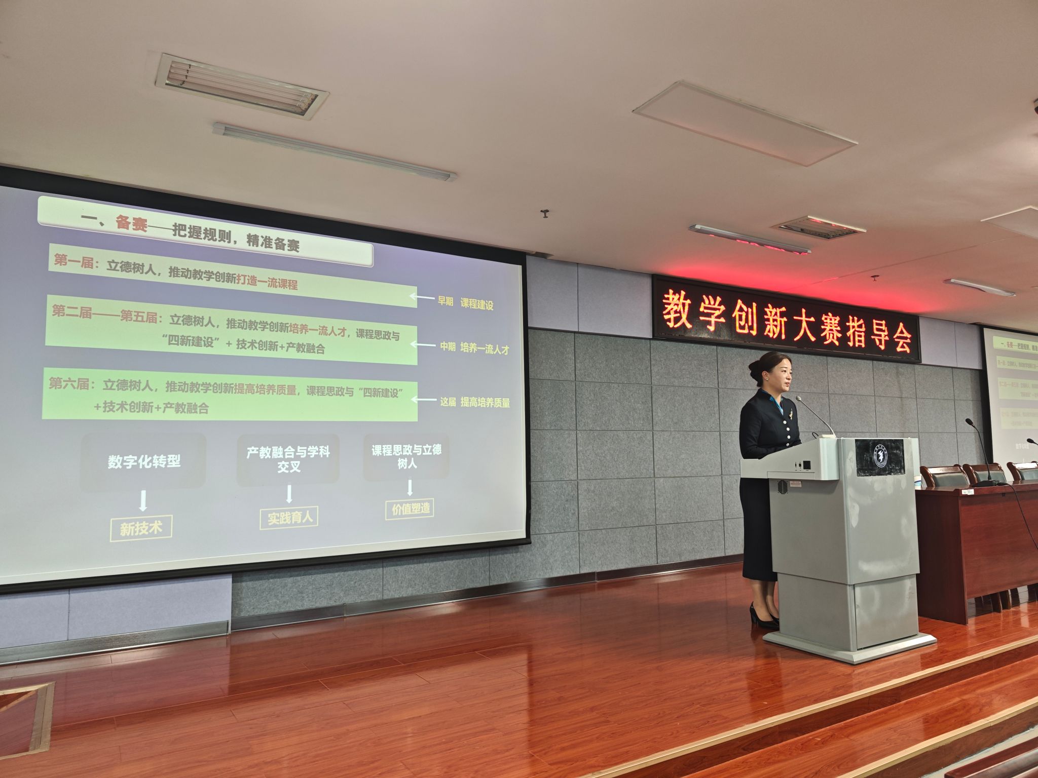 范丽副教授为我校艺术学院教师,曾荣获第四届江苏省高校教师教学创新大赛产教融合赛道一等奖,市“先进个人”、校“师德先进个人”、校“课程思政”优秀教师。指导会上,她结合自身参赛经历,从把握规则、明确创新要点、精心设计内容、无痕融入课程思政、体现产教融合、体现技术赋能、现场仪态表达等多方面详细拆解了参赛要点。现场聆听的老师们纷纷表示收益颇多,对今后准备比赛工作更加清晰明确了。