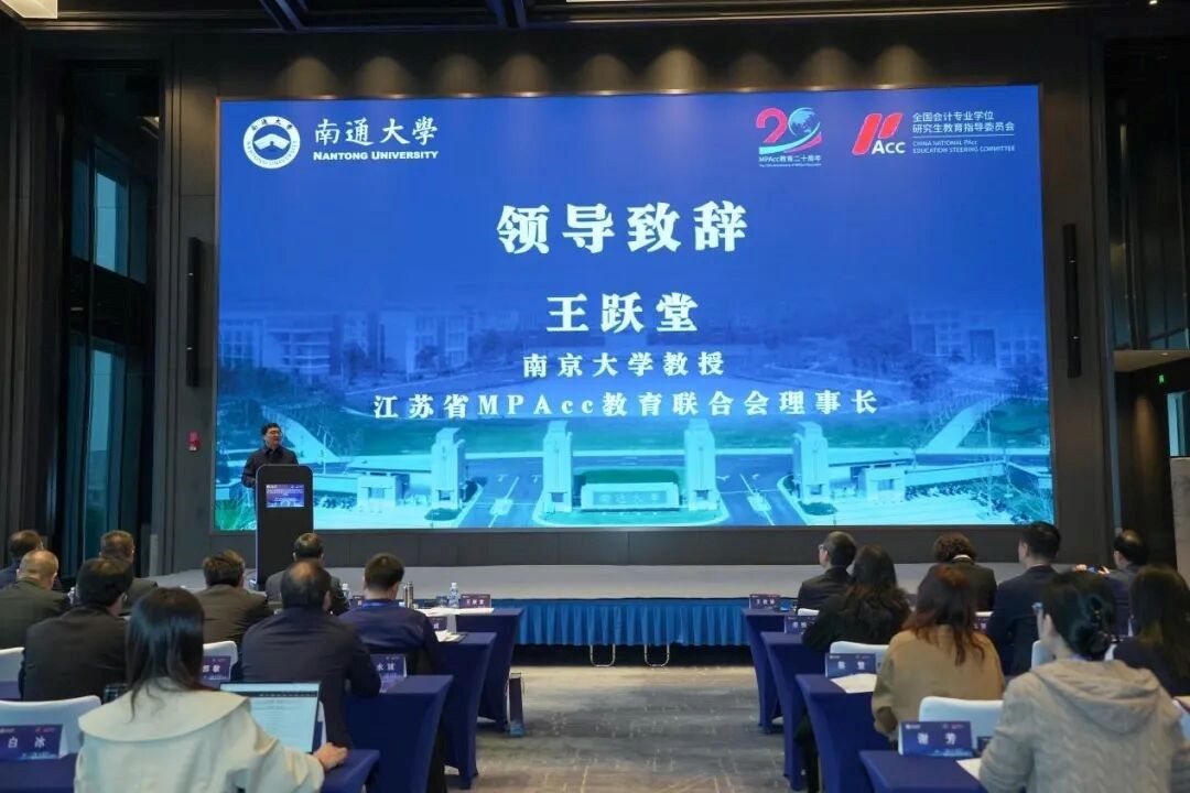 江苏省财政厅一级调研员、会计处处长、江苏省会计学会秘书长吴琳,南通市财政局局长曹金海,江苏省MPAcc教育联合会理事长、教育部长江学者特聘教授、会计教指委委员、南京大学教授王跃堂等先后致辞,充分肯定了江苏省高校MPAcc教育发展高层论坛在推动全省会计人才培养方面的重要作用,并一致强调,面对汹涌澎湃的数智化浪潮,会计高等教育必须主动求变,深化产教融合,培养出能够适应并引领未来商业发展的复合型、创新型高端会计人才。