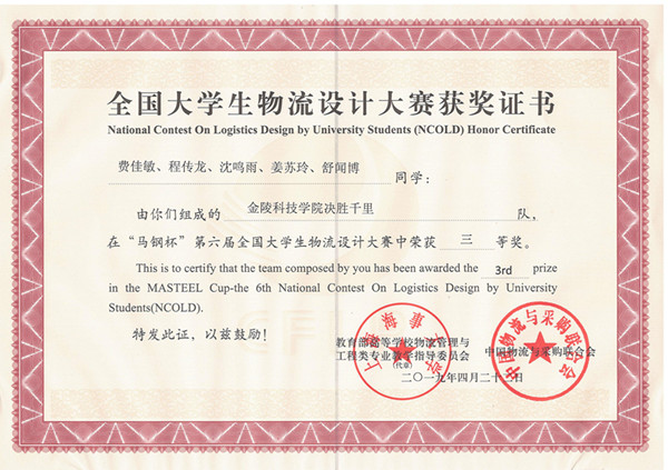 本届大赛共有来自全国300多所本科高校的580支队伍报名参赛,其中包括80支“双一流”高校队伍。我校yl9193永利集团物流管理系“决胜千里队”在郑庆华博士和朱长宁教授的精心指导下,顺利通过初赛、复赛,最终成功闯入全国决赛,荣获三等奖,取得了近年来我校参加此项赛事的最好成绩。此外我校何宽博士和王翯华博士指导的“易周队”荣获本届大赛优胜奖,郑庆华博士和朱长宁教授荣获优秀指导奖,“决胜千里队”五位选手费佳敏、沈鸣雨、姜苏玲、程传龙、舒闻博均获得由中国物流与采购联合会颁发的物流从业人员职业能力中级证书。