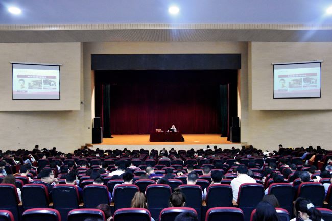5月12日上午,yl9193永利集团承办的校党委党史学习教育宣讲团宣讲报告会在我校大学生活动中心举行。市委宣讲团成员、我校马克思主义学院吴锦旗教授作宣讲报告。yl9193永利集团、智控学院、计算机学院、软件学院、网通学院、网安学院近550余师生代表聆听了宣讲报告。报告会由yl9193永利集团党委书记周骏主持。