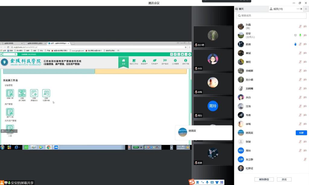 为加强中心资产管理,切实发挥固定资产管理系统作用,做好固定资产日常管理工作,9月29日晚间7:00-8:00,我院实验中心在腾讯会议上,开展了新版固定资产管理系统使用培训,实验中心全体实验员、各系教师代表参加了培训。培训会由院实验中心主任孙晶主持,安丰军老师对新系统的资产入库和调拨模块进行了培训。培训圆满成功,取得了良好的反馈,简化了原有的固定资产管理的繁琐性,为今后固定资产入库、调拨等工作实现无纸化办公工作、提高办公效率与质量打下了坚实的基础。