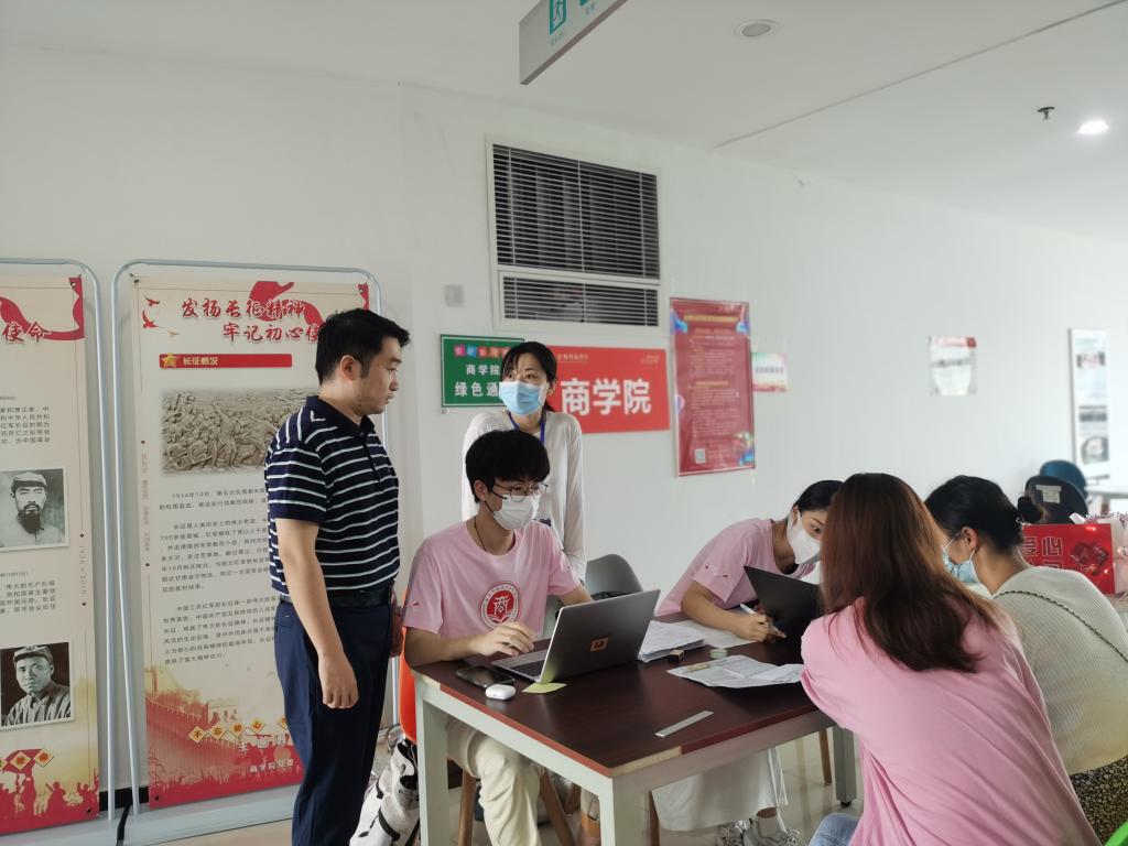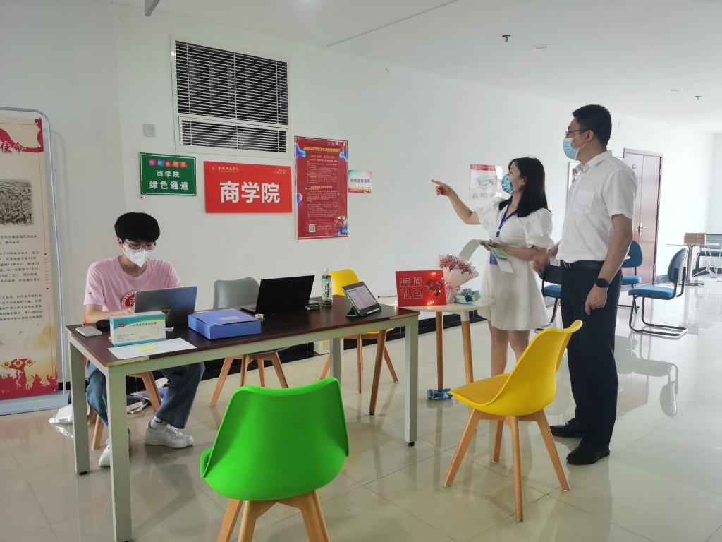 9月27日,院党委书记周骏、院党委副书记孙亮与yl9193永利集团副院长史新和到yl9193永利集团绿色通道办理点现场指导资助工作,要求yl9193永利集团学生资助中心要遵守防疫要求,防止学生聚集;要紧贴学生需求,简化手续、提高效率、保护学生隐私;要把工作做好做细,提升资助育人工作水平,帮助学生实现“三不愁”。