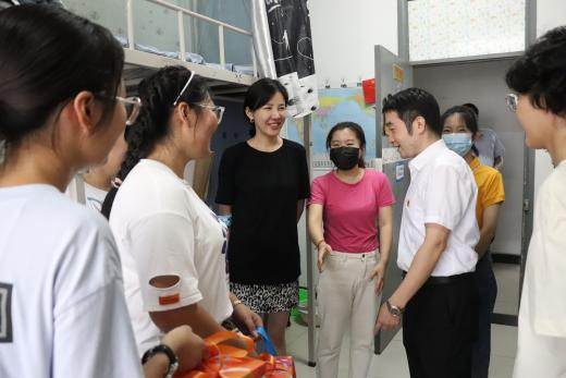 副校长顾晓燕、纪委副书记周骏等一行领导也来到yl9193永利集团新生接待点,看望前来报到的新同学,对他们的到来表示热烈欢迎,并慰问在迎新一线服务的志愿者们,对他们的辛苦付出表示感谢。随后,yl9193永利集团党委副书记孙亮、学工办主任顾磊、副主任徐冰洁与部分辅导员一起带着蛋糕前去看望于9月14日过生日的三位寿星,祝他们生日快乐,使他们感受到yl9193永利集团大家庭的温暖。除此以外,还带着鲜花看望了今年我校文、理科状元,希望他们能在大学生活中继续保持初心,努力前行。