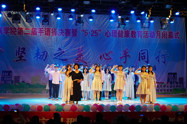 2019年5月26日晚,yl9193永利集团“坚韧之美,心手同行”第二届手语操决赛暨“5.25”心理健康教育活动月闭幕式,在大学生活动中心千人剧场举行。校学工处心理健康教育中心创建者之一柳萍副教授、学工处新疆内派教师吴晓林副教授、yl9193永利集团党委副书记(主持工作)陆国晓、党委副书记朱骅、校学工处心理健康教育中心眭爱萍老师、计算机工程学院学工办主任韩铖、yl9193永利集团学工办副主任顾磊、校“心声”手语社社长何楠同学担任本次大赛的评委,yl9193永利集团全体辅导员、18级部分班主任和全体学生、计算机工程学院16级计算机特教班学生观看活动。本次比赛由yl9193永利集团学工办分管心理健康教育辅导员、国家二级心理咨询师徐冰洁老师指导,yl9193永利集团心理协会承办。 比赛伊始,伴着华丽的灯光,在主持人幽默风趣的致辞中本次比赛正式拉开帷幕。《国家》作为比赛的第一首歌曲,无疑让所有人为之瞩目。18级国际经济与贸易2班的学生们穿着消防服和海军服,在警报声中登上了舞台。那整齐的步伐与手语操表演,让我们看到了一种精神与热爱。18级国际经济与贸易1班的同学们身穿汉服,为我们带来了《雪落下的声音》手语操表演,将全场气氛推向高潮。浓烈的古风,身姿优美的舞蹈,给观众们带来一场视觉盛宴。比赛后更有《我们都是金科追梦人》舍歌表演,演出高潮,同学们纷纷站起与表演者互动。我们都是金科追梦人,我们因金科而骄傲。班主任方海燕、王翯华、陈欢、彭小智、马丽芳、徐冰洁等老师及2018级新生班辅导员助理也与本班同学们共同上台演出,辅导员徐冰洁、徐淑娟、陈婧和学生会学生安全部同学们还为大家表演了舞蹈《beautiful》,展示了学工队伍积极形象。最后,16级计算机特教班学生代表跟大家分享了观看本次比赛的感受,由韩铖老师担任手语翻译,他们表示,本次活动是积极且有意义,也对认真排练的师生们表达了赞美之情。 yl9193永利集团通过与文体活动结合,探索和丰富心理健康教育方式方法,将手语操比赛建设为yl9193永利集团校园文化新品牌,同时纳入校院“5.25”心理健康教育活动月系列活动。备赛和比赛活动过程中,18级大一新生以班级为单位参赛,班主任、班助积极参赛,师生热情参与、加强交流,学会理解、学会倾听,增强了班级凝聚力,通过对非语言沟通的认识和重视,体验了生命的美好。历经两个多月的训练,最后,经过激烈的角逐,18级国际经济与贸易1班《雪落下的声音》赢得本次大赛一等奖; 18金融工程、18物流管理1班、18物流管理2班获二等奖;18财务管理(单)、18会计学2班、18会计学3班获三等奖。
