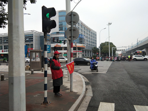 志愿服务活动在江宁区天元东路与竹山路交界、天元东路与莱茵达路交界、天元东路与天印大道交界等主要路口开展。大学生志愿者们身穿红马甲、头戴小红帽、手持劝导旗,站在路口进行交通疏导,引导非机动车在斑马线前主动礼让行人,劝阻倚靠护栏、借道行驶、横穿马路、闯红灯等不文明甚至违反交通法规行为,积极维护道路交通秩序,宣传遵纪守法的法治理念,增强市民们交通意识,为过往市民营造了更安全的出行环境。