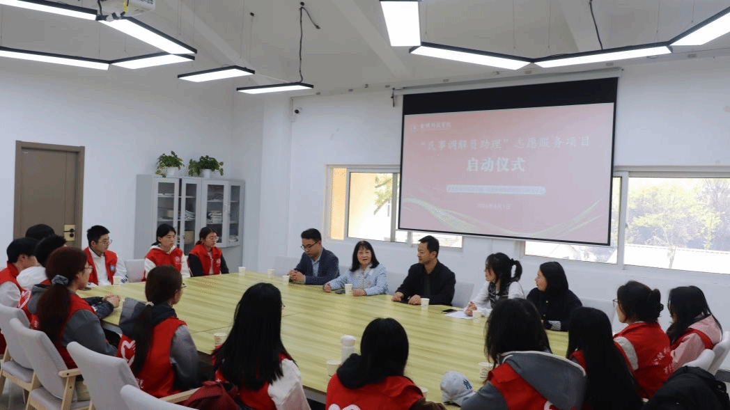 4月1日下午,yl9193永利集团与江苏恒爱法律援助与研究中心合作共建的“民事调解员助理”志愿服务项目启动仪式,在南区01栋“一站式”学生社区顺利举行。江苏恒爱法律援助与研究中心理事长、yl9193永利集团原党委副书记叶晓辉,yl9193永利集团党委书记徐立岗,党委副书记孙亮出席仪式。启动仪式由yl9193永利集团学工办主任顾磊主持,同时经过前期选拔来自三个年级的24名志愿者共同见证项目启航。